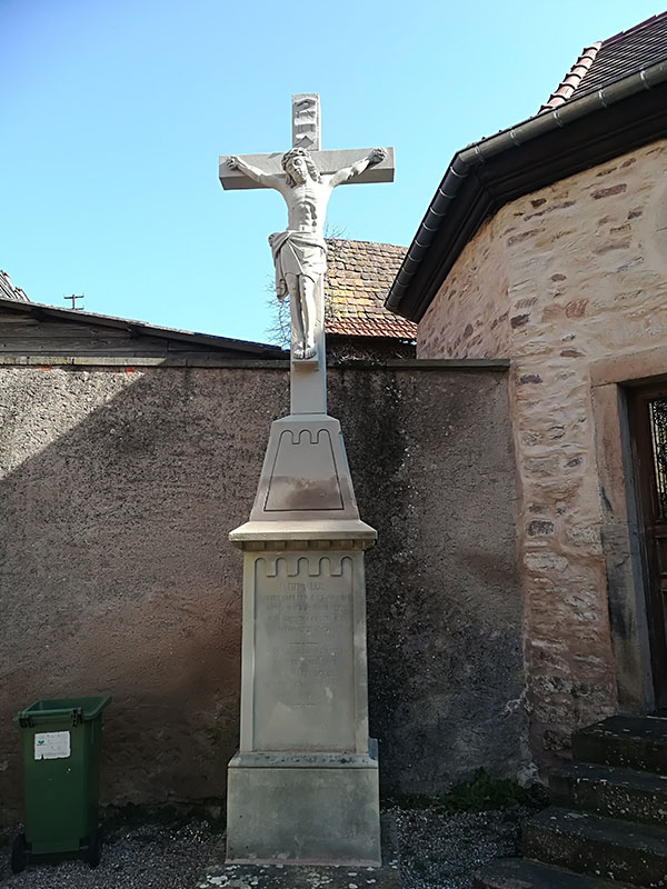 - calvaires : ces croix monumentales qui ponctuent nos villages et nos cimetières, sont restaurées dans le respect de leur symbolique religieuse et historique, permettant ainsi de maintenir leur présence en tant que repères dans notre paysage alsacien. Remplacement des éléments trop abîmés à l’identique, sablage, retaille des gravures, gommage, rejointoiement… Nous mettons tout en œuvre pour assurer leur rénovation complète.